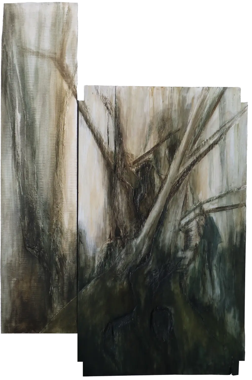 Acrílico sobre madera y tela, 130 x 300 cm, 2020.