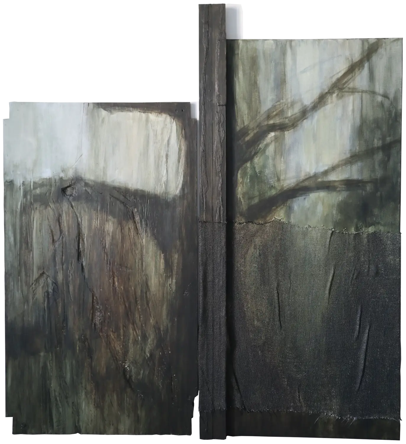 Óleo sobre tela, arpillera y madera, 123 x 183 cm, 2003.